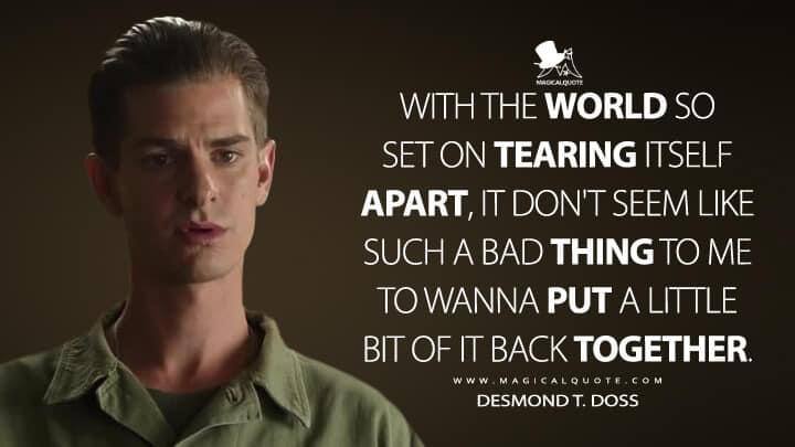 ဘယ်လိုဝိုင်းအနိုင်ကျင့်ကျင့် မထွက်ဘူး။ သူ စစ်တပ်မှာ အမှုထမ်းမယ်။ Medic လုပ်မယ်။ အိမ်မှာ အေးဆေးထိုင်မနေနိုင်ဘူး။ အသက်တွေ ကယ်မယ်။ ဒါပေမဲ့ ဘယ်သူ့အသက်မှတော့ မသတ်ဘူး။ သေနတ်မကိုင်ဘူး။ အဲဒီအတိုင်းပဲ ခိုင်ခိုင်မာမာ ပြောနေတယ်။