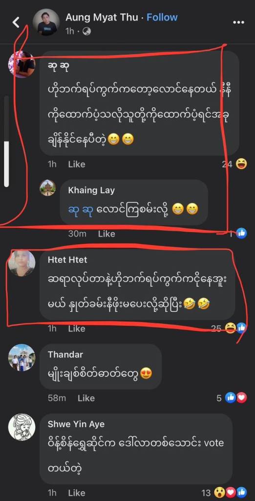 One response to “Post 85 – စကစ လော်ဘီတွေ အင်တိုက်အားတိုက် ဝိုင်းတွန်းခဲ့ကြတဲ့ မယ်ပြိုင်ပွဲ ( ကိုဇင်ဇေ )”